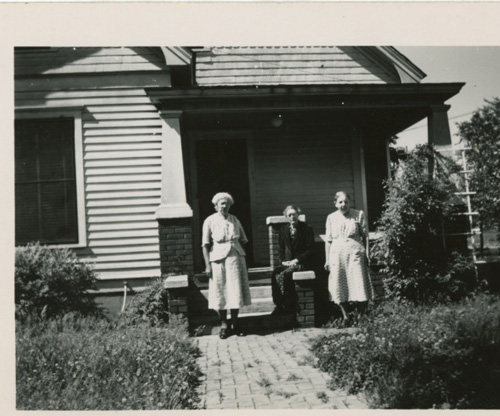 L to R: Cora, Margaret Fullerton, and Stella. Cora's front porch. |