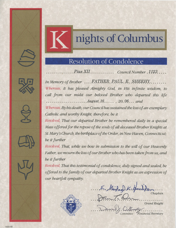 Knights of Columbus - Resolution of Condolence |